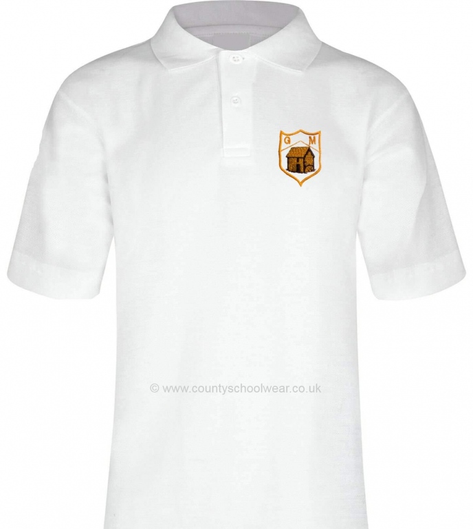 White polo shirt 65/35 poly / cotton embroidered with the Gig Mill Primary School logo.
