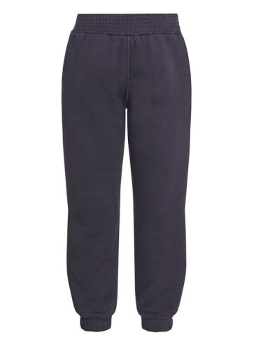 Navy blue or Black poly/cotton jog pants with elasicated waist and hems.