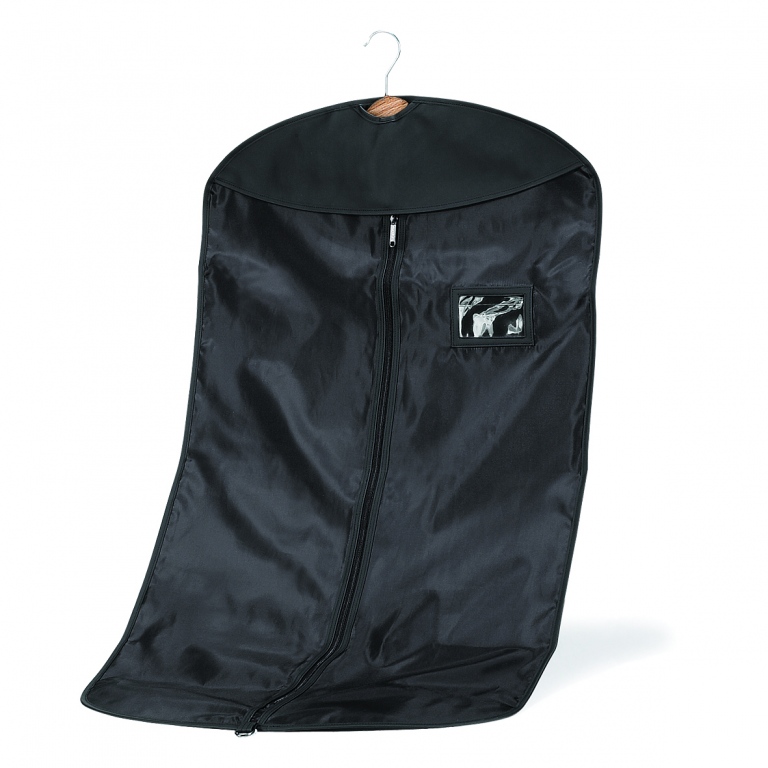 The suit cover has a metal loop with press stud attachment to hold your coat hanger in place and a metal loop at the base of the bag to enable folding when in transit. The suit protector bag has an ID window for your name / business card for easy identification.