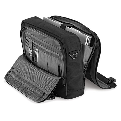 The laptop briefcase bag has a padded laptop section and a front pocket organiser section with zipped mesh pocket to hold accessories. With an adjustable shoulder strap, pocket to stow the shoulder strap and carry handle the laptop briefcase bag is a convenient and ergonomic way to transport your laptop and accessories.