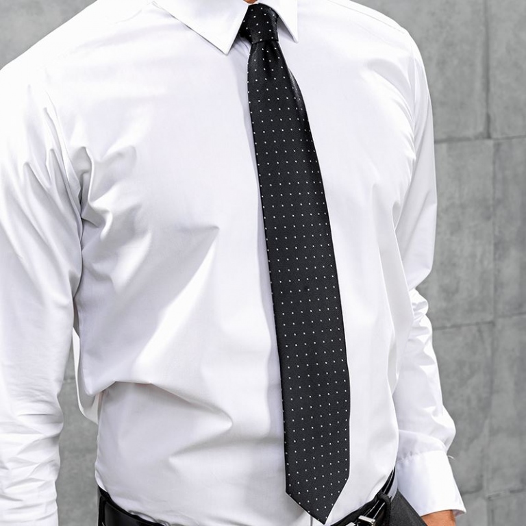 Stylish and smart 57" x 3" neck tie available in a range of micro dot patterns with two coloured yarns woven together to create a contrast effect tie.