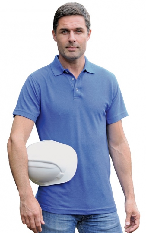 The polycotton work wear polo shirt has a pique knit fabric, which gives a fine textured surface. The polo shirt has a 3 button placket and short sleeves. The work wear polo has superior construction for comfort and durability in a range of professions.
