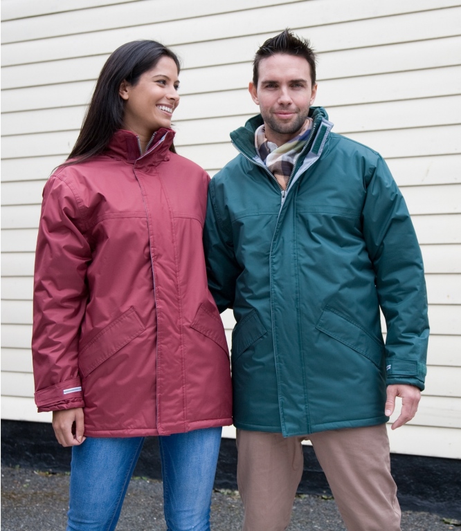 The waterproof windproof padded parka coat has a quilted polyester padding, fleece lined handwarmer pockets and a fleece trim on the inside of the collar providing extra warmth for the horse rider and equestrian. With fully taped seams, elasticated cuffs, full front zip, concealed 3 panel hood and storm flaps, the jacket keeps out the rain and wind and is quick drying. For added safety, there is a reflective tape detail on the lower back and cuff. An ideal jacket to wear when around the yard or to keep warm and dry when out and about.