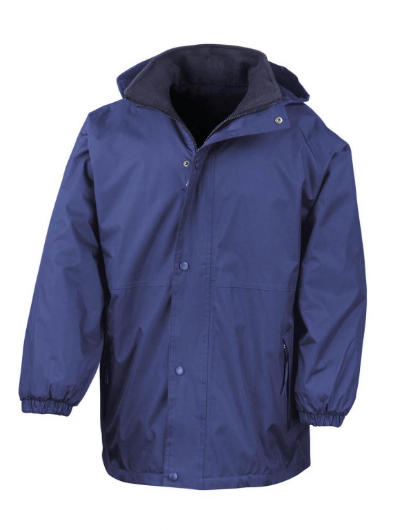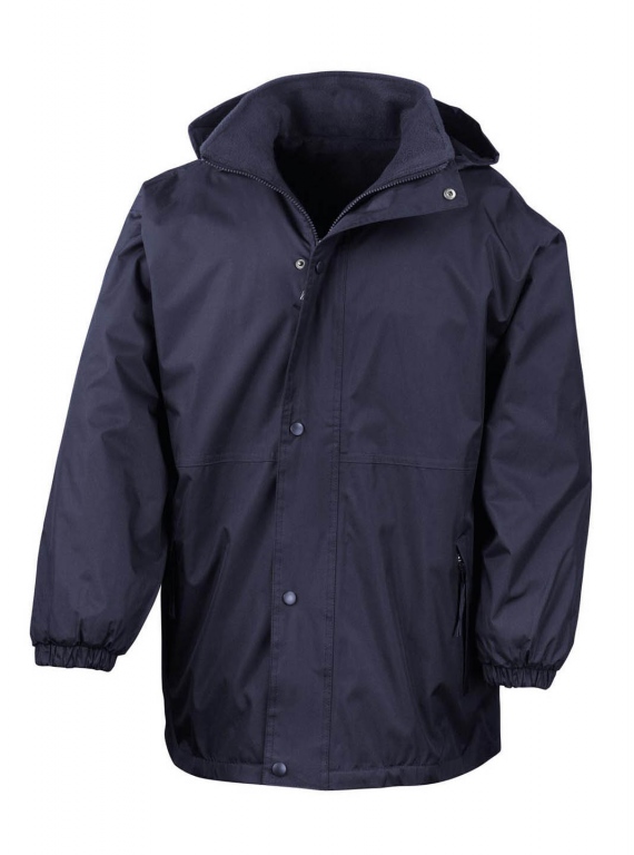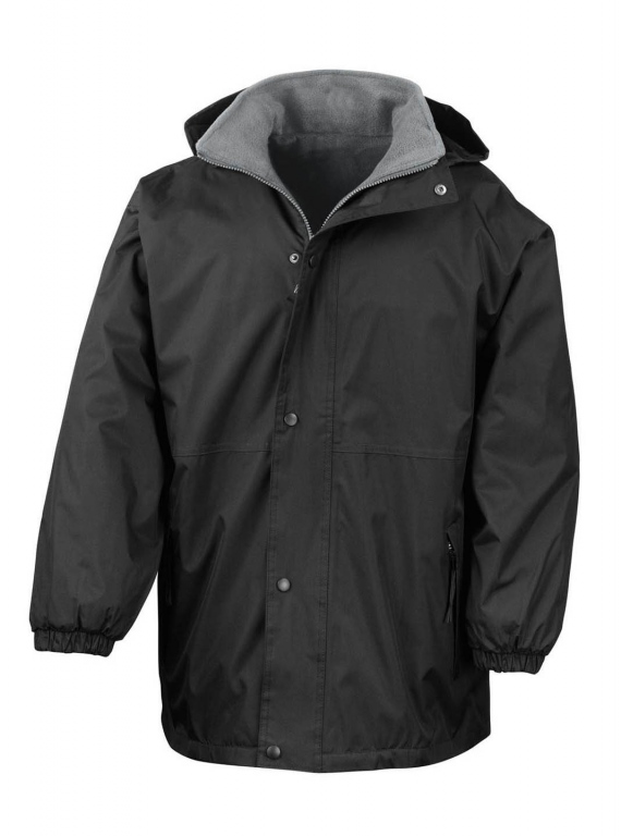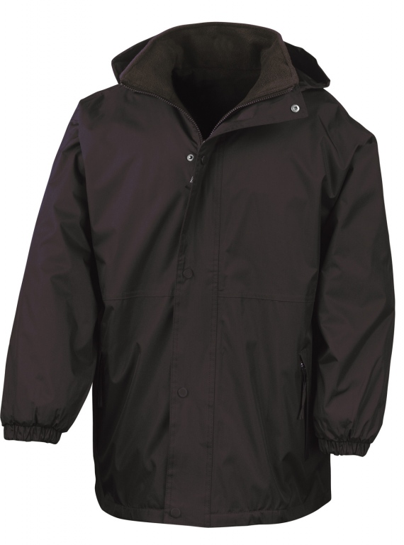 100% waterproof polyester sturdy outer with 280gsm active anti-pilling fleece lining - stylishly designed to be reversed giving 2 jackets in 1.