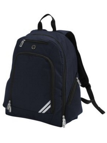 The school or college premier ergonomic backpack is a stylishly functional lightweight bag with padded lumbar support to protect the back. The bag has a fully opening main compartment for easy access, MP3 pocket and headphone socket, front zipped accessory compartment, side zipped pockets, top carry handle and adjustable shoulder straps.