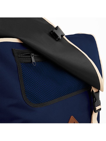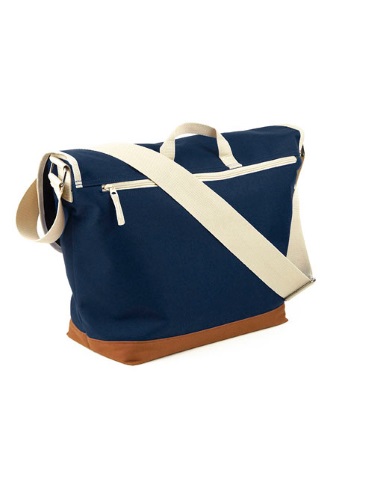 The school / college satchel style messenger bag has a generous adjustable shoulder strap, snap closure and leather look accents.