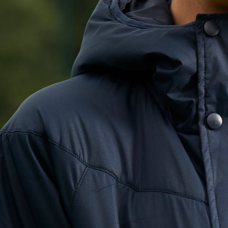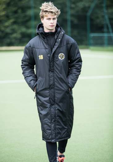 A quality team wear bench coat available in a range of Youth and Adult sizes and two colour ways, navy and black. Water repellant full length coat with thermal wadding for extra warmth. Stylishly designed with full zip opening, concealed press studs, storm flap, two deep pockets, hood and power stretch cuffs.