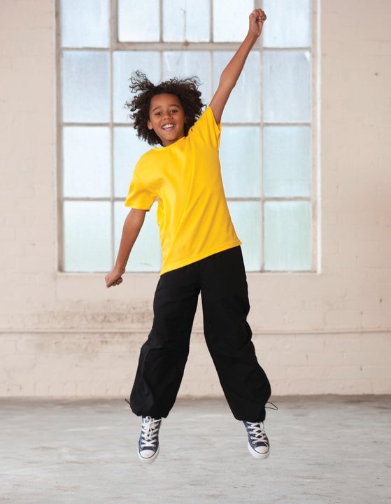 A brand new concept in 100% polyester T-shirts, made in a super soft knit polyester fabric with its high volume construction ensuring cool comfort for everyday school sportswear use or for any type of activity or event.