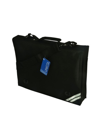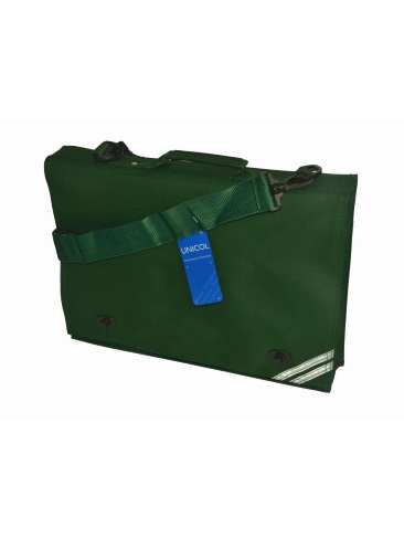The school messenger satchel has front fastening, a detachable webbed shoulder strap and alternative carry handle. With a reflective stripes on the front flap providing safety on journeys to and from school, the school satchel style book bag is a great addition to any approved school uniform.