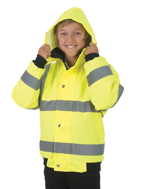 School Wear Hi Vis Safety Waterproof Bomber Jacket With Concealed Hood - 100% Polyester