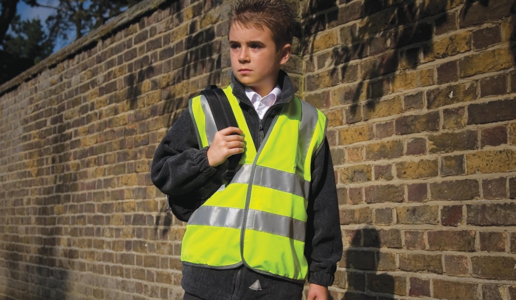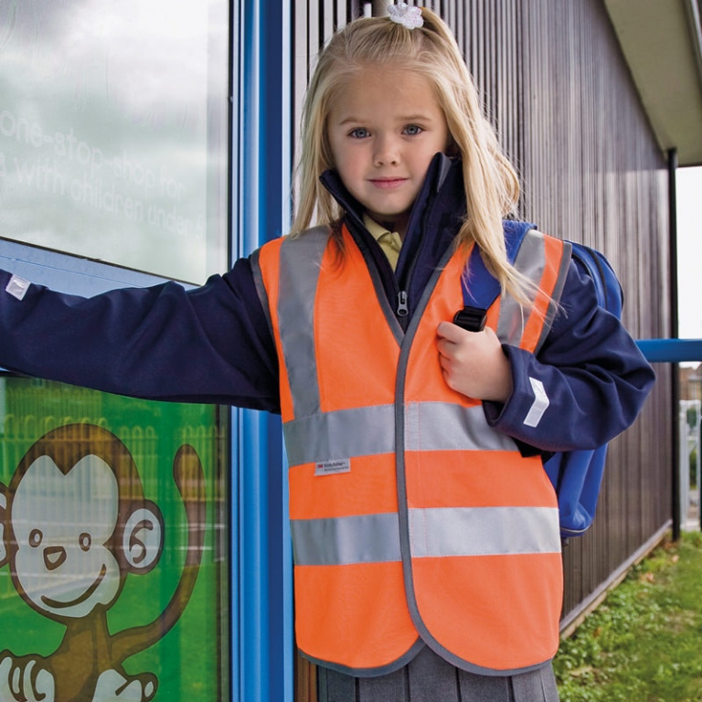Velcro front fastening for easy access. A simple but highly effective certified safety vest jacket to be worn over school uniform providing all the visible protection that you need, day or night.