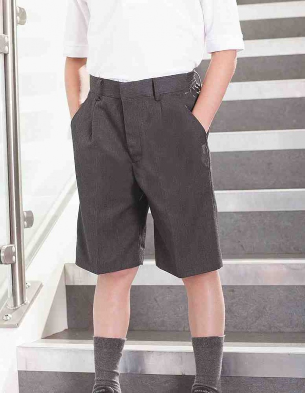 Its many features include fulliy lined, half elastcated waist, front pleat, long leg style and belt loops, making these quality school short trousers comfortable to wear and a practical item of school wear uniform.