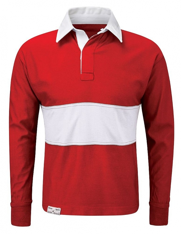 The rugby shirt is made of 100% acrylic for comfort, it has a strengthened concealed rubber button placket, double stitched seams, and a traditional white collar.