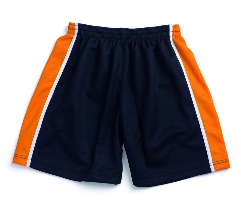 Rugby sports shorts with contrast side panel to match the Polyester Reversible Rugby Jerseys, made of heavyweight polyester with longer, wider leg, speed vents, elasticated waistband and drawcord, no side pockets.