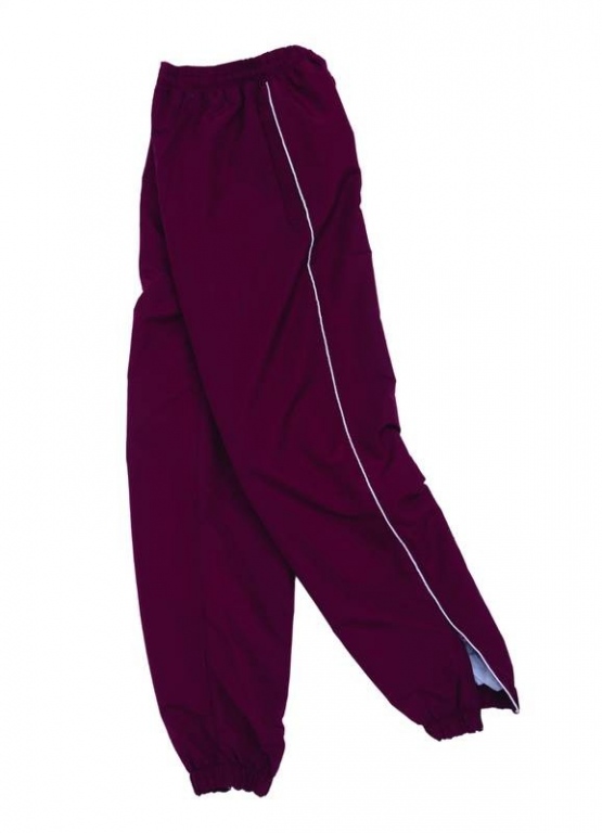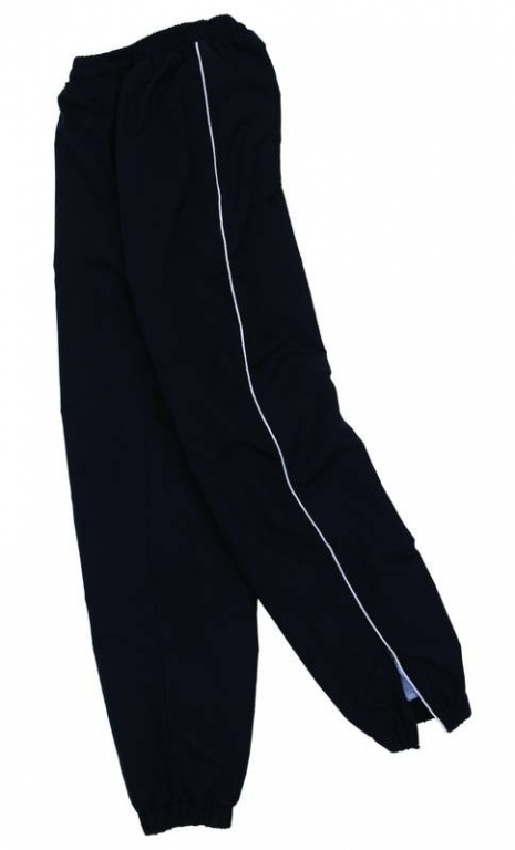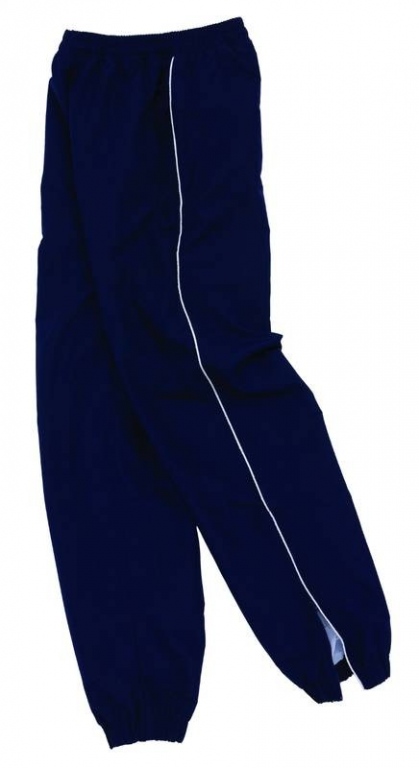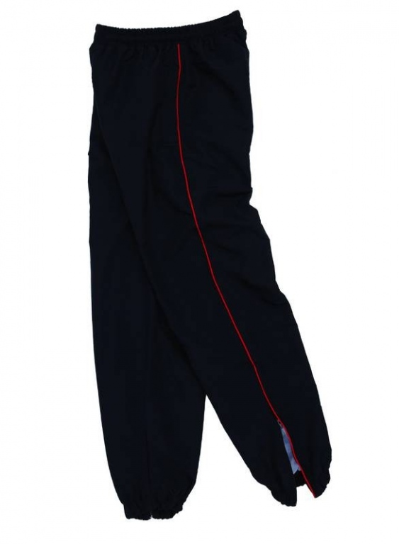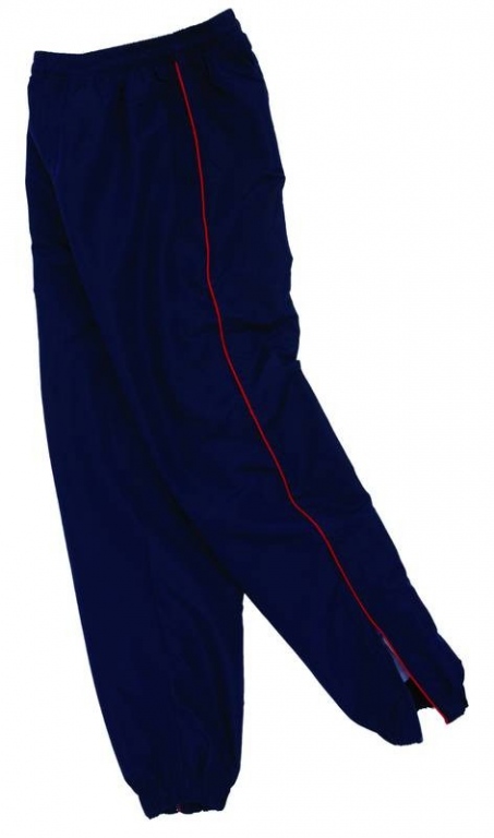 Sports training trouser with piping colours: Navy Blue/Scralet Red, Navy Blue/White, Bottle Green/White, Maroon/White, Black/ Scarlet Red, Black/White, Royal Blue/White