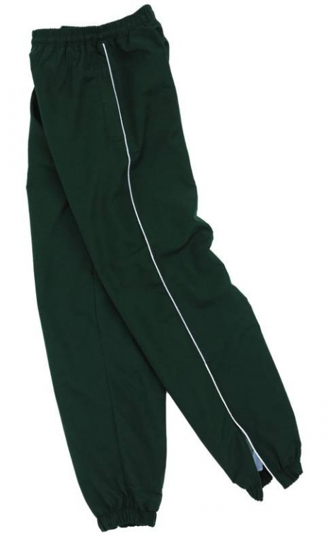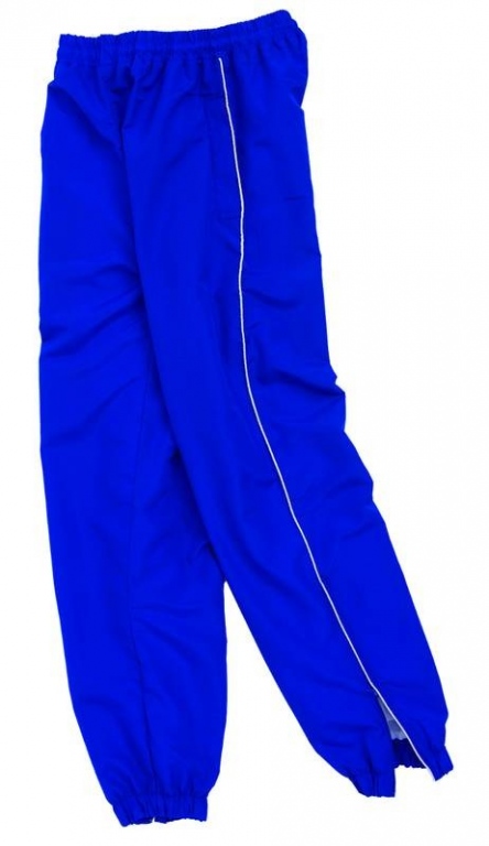 Sports training trouser bottoms with 100% polyester outer and warm poly/cotton lining, turning to nylon at the bottom. Sports design with elasticated bottoms with leg zips. 2 zip side pockets and 1 hip pocket.