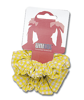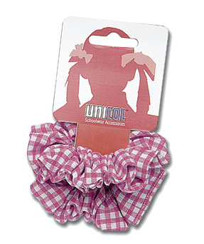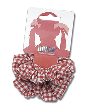 Please contact us by e mail or telephone to enquire and order gingham colour school uniform hair scrunchie.