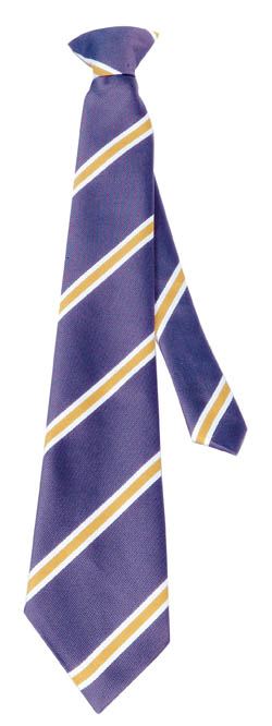 The school uniform, house or club clip on tie can be made in any colour and stripe design to suit your requirements. The custom design tie is made from polyester fabric. The clip on style ensures standard lengths and uniformity of the tie when worn.