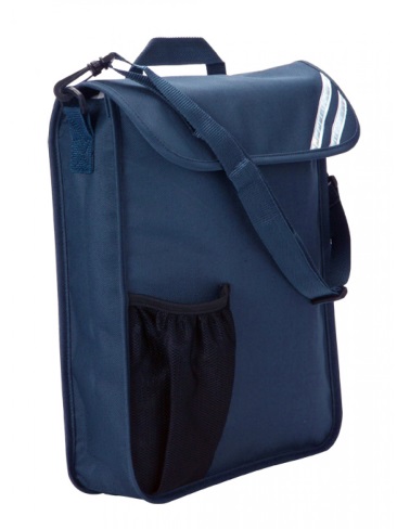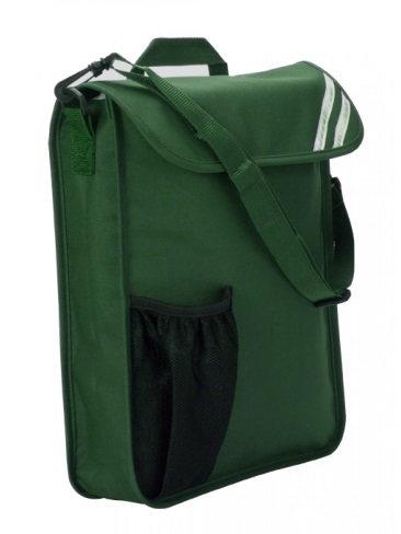 The portrait school book bag A4 size with an expandable base offering additional capacity, name card holder and reflective safety stripes, made of 420D Nylon in a variety of school colours to complement any smart school uniform.