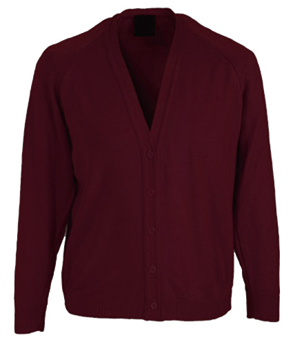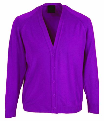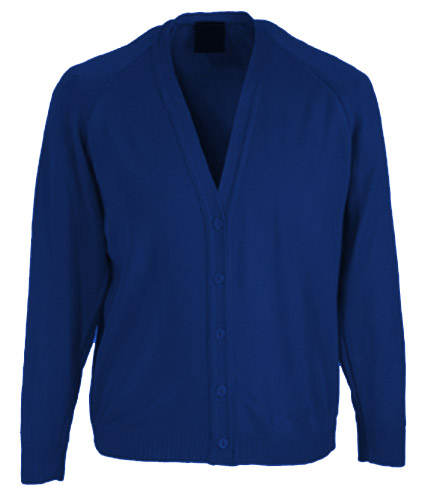 School knitted cardigan colours: Royal Blue, Black, Bottle Green, Brown, Maroon, Mid Grey, Navy Blue, Purple, Red