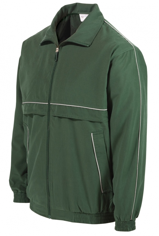Sports team trackie top jacket available in five school colours. Fully lined with mesh polyester and designed with full zip opening, elasticated cuffs, waist hem and 2 zipped pockets. Reflective piping for enhanced visibility and stylish sports trim.