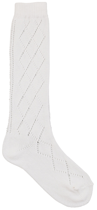 Girls school sock long knee length patterned socks sold in packs of 2 and made of white cotton pelerine.